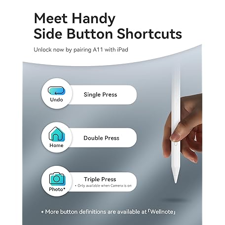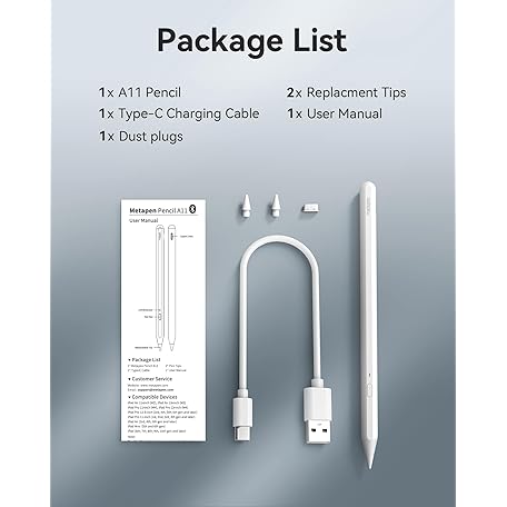 Thông tin sản phẩm Metapen Pencil A11 for iPad 2018-2025, (Quick Button), 0.1mm Pixel Precise, 2X Faster Charge Stylus Pen Compatible Apple iPad 11 A16/10/9/8/7/6th Gen, Pro 12.9/11/13-inch M4, Air 3/4/5/M2/M3, Mini 5/6