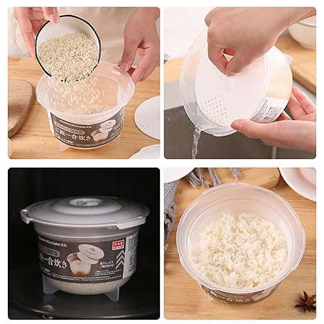 Thông tin sản phẩm Microwave Rice Cooking Bowl, Portable Cooker Bowl Steamer Basket, Small Food Cooker For Kitchen, Multifunctional Kitchen Cookware For Milk, Vegetable, Pasta Fivetoo