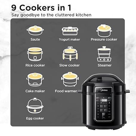 Thông tin sản phẩm Midea Pressure Cooker 6L, 70% Faster 14 Presets, Nourish Pro, 9-in-1 Multi Cooker(Yogurt Maker, Rice Cooker, Slow Cooker, Sauté, Steamer,etc.) Stainless Steels Inner Pot Non-Stick Dishwasher Safe