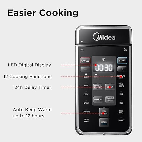 Thông tin sản phẩm Midea Pressure Cooker with 14 presets and 7.6L Multi Cooker(Yogurt Maker, Rice Cooker, Slow Cooker, Sauté, Steamer,etc.) Stainless Steels Inner Pot Non-Stick Dishwasher Safe