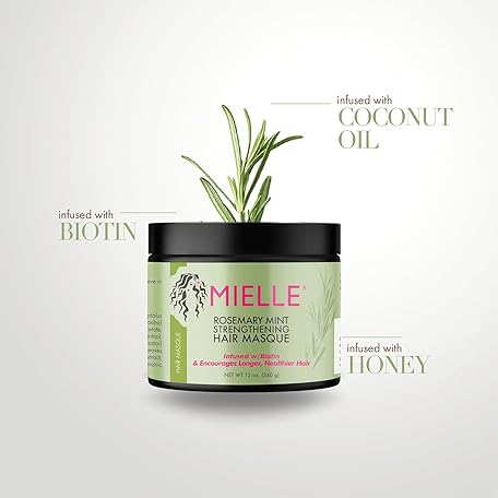 Thông tin sản phẩm Mielle Rosemary Mint Strengthening Hair Mask for Damaged Hair - Deep Conditioning Treatment Enriched with Biotin, Honey & Coconut Oil - Helps Encourage Longer, Healthier Strands, 340 ml (Pack of 1)