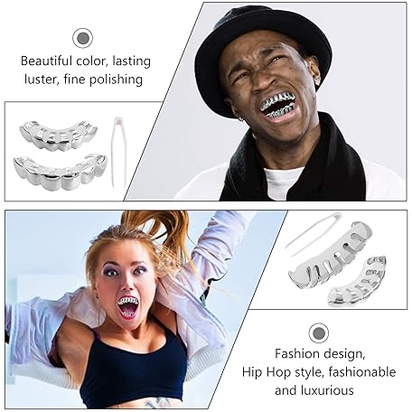 Sản phẩm Milisten Silver Hip Hop Vampire Teeth Grills Top and Bottom Face Mouth Vampire Fangs for Your Teeth Hip Hop Jewelry Party Favors đang được bán với giá ưu đãi là $15.1837 tại nước Anh.