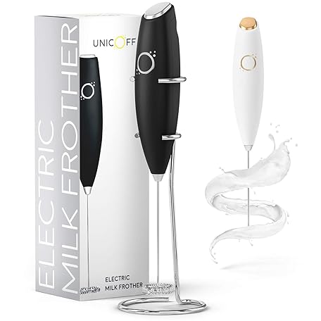Milk Frother Black - Cappuccino Maker Latte Maker - Drink Mixer - Handheld Foam Maker - Bonus Recipes and Instruction Included - Almond Coconut Milk Frother
