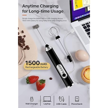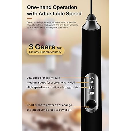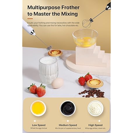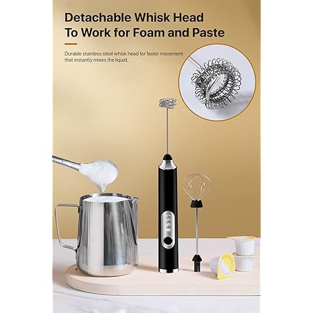 Thông tin sản phẩm Milk Frother Handheld, Rechargeable Battery Powered Coffee Frother, 2 Heads Automatic Coffee Whisk Foam Mixer with USB Rechargeable 3 Speeds, Drink Mixer for Matcha, Latte, Hot Chocolate, Cappuccino