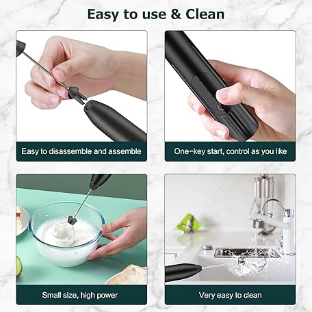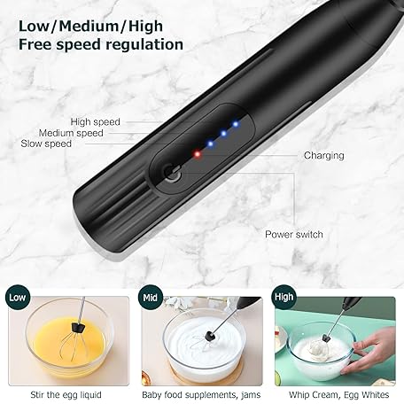 Thông tin sản phẩm Milk Frother Handheld Whisk Electric Stirrer Rechargeable Milk Foam Maker with Stainless Steel Whisk 3 Adjustable Speed Mini Drink Mixer Coffee Foamer for Latte, Cappuccino, Hot Chocolate Matcha