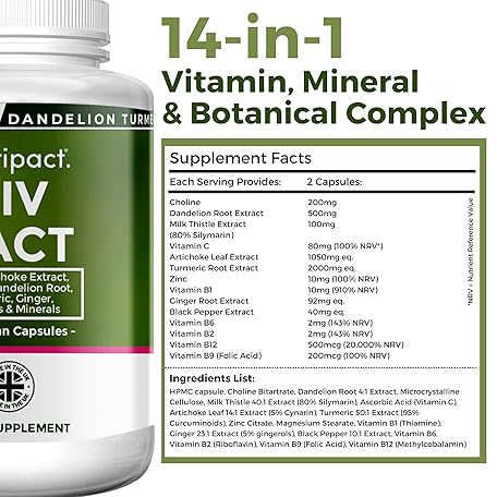 Thông tin sản phẩm Milk Thistle 14-in-1 Liver Support Complex – 7986mg per Serving – with Dandelion Leaf, Artichoke Extract, Choline, Turmeric, Vitamins & Minerals – 80% Silymarin – 60 Vegan Capsules (not Tablets) – UK