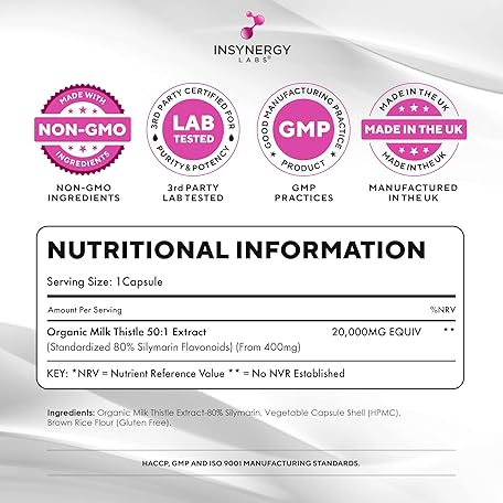 Thương hiệu Insynergy Labs là cái tên nổi tiếng được rất nhiều khách hàng trên thế giới chọn lựa. Với kiểu dáng đẹp mắt, sang trọng, sản phẩm Milk Thistle 20,000mg Per Capsule (Maximum Dose in UK) Superior Organic 80% Silymarin Milk Thistle High Strength, 60 Vegan Milk Thistle Tablets Capsules Supplement là sự lựa chọn hoàn hảo nếu bạn đang tìm mua một món cho riêng mình.