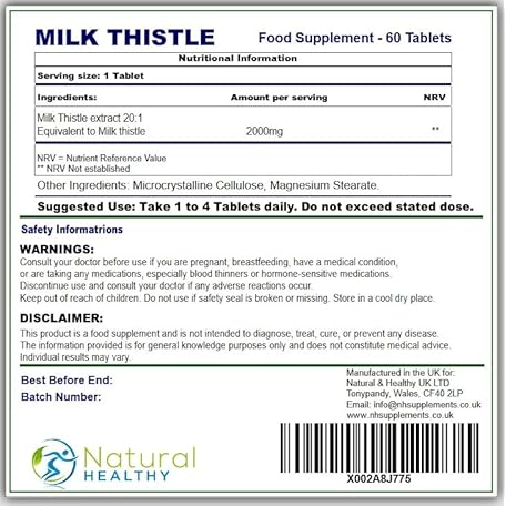 Thông tin sản phẩm Milk Thistle Extract Herbal Supplement, 2000mg, 20:1 Concentrated Formula, UK Made