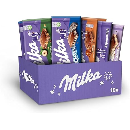 Milka Selection Gift Sharing Bulk Box, Assorted Chocolate Tablets, Milka OREO, Caramelo, Creme, Hazelnut and Alpine Chocolate Milk, Perfect for Gifting or Sharing, 100 g Bars (Pack of 10 Bars)