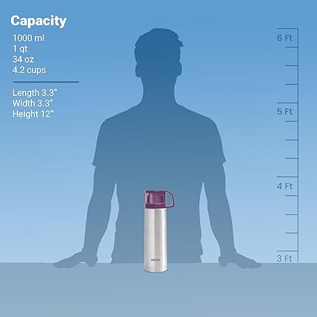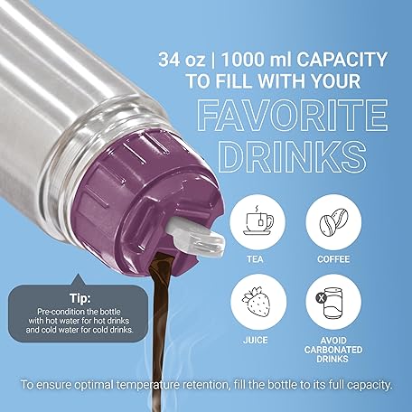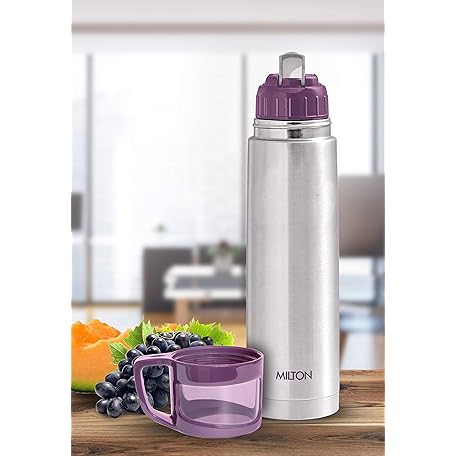 Thông tin sản phẩm Milton insulated water bottle 1 litre (34 oz) of stainless steel with cup & Cover, Double walled vacuum thermal flasks for hot drinks, Leakproof, for travel, sports, camping, hiking, Glassy Purple