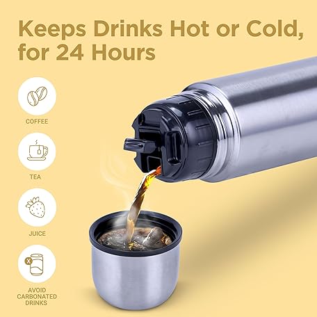 Thông tin sản phẩm Milton Vacuum Flask for Hot Drink 1 Litre (34 oz), Stainless Steel Double Walled Insulated Water Bottle for 24 Hour Hot and Cold Drinks with Cover, Leak Proof, BPA Free, Thermosteel Flip Lid 1000 ml