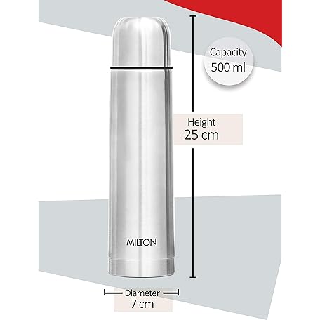 Thông tin sản phẩm MILTON Vacuum Flask for Hot Drink 500 ml (16 oz), Stainless Steel Double Walled Insulated Water Bottle for 24 Hour Hot and Cold Drinks, Leak Proof, BPA Free, Thermosteel Flip Lid