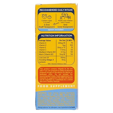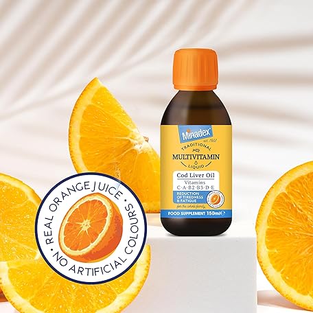 Thông tin sản phẩm Minadex Multivitamin Liquid 150 ml – Cod Liver Oil + Vitamin C, A, B2, B3, D & E | Immune Support | Energy & Bone Health | Natural Orange Flavour | 2-Month Supply | Spoon Included | Made in UK