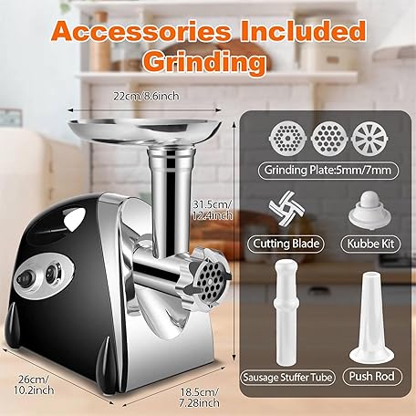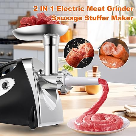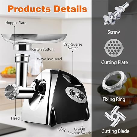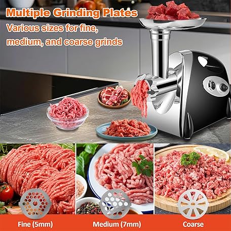 Thông tin sản phẩm Mingfuxin Electric Meat Grinder, Stainless Steel Meat Mincer & Sausage Stuffer, Food Grinding Mincing Machine with 3 Different Cutting Plates Sausage Maker for Home & Commercial Using