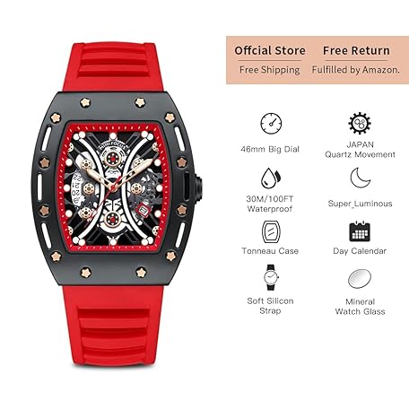 Sản phẩm Mini Focus Unique Men Watch Tonneau Casual Wrist Watch (Hollow/Waterproof/Super Luminous/Calendar) Soft Silicon Band Fashion Cool Watch for Men đang được bán với giá ưu đãi là $53.7915 tại nước Anh.