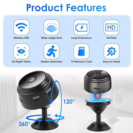 Thông tin sản phẩm Mini Hidden Spy Camera Wireless Full HD 1080P with Audio, Motion Detection, Infrared Night Vision, 150° Wide Angle, Magnetic Mount, Baby Monitor, Indoor/Outdoor Security Camera for Home Surveillance