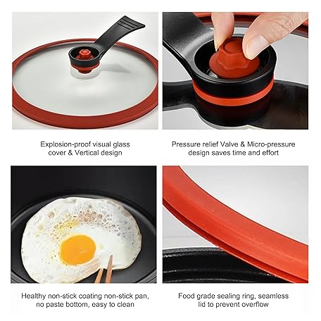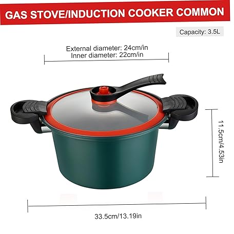 Thông tin sản phẩm Mini Pressure Cooker, 3.5L Fast Heating Pressure Pot with Lock Handles, Non-stick Stockpot with See-Through Lid for Gas, Induction, Electric Stoves, Green