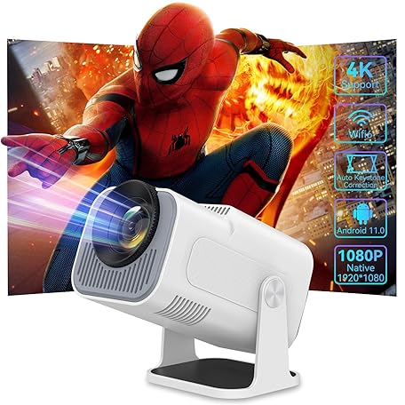 Mini Projector 4K with WiFi 6 and Bluetooth, 1080P Full HD Portable Mini Projector with Android 11.0 and 180° Rotatable, Auto Keystone Home Projector for Phone/TV Stick/Laptop