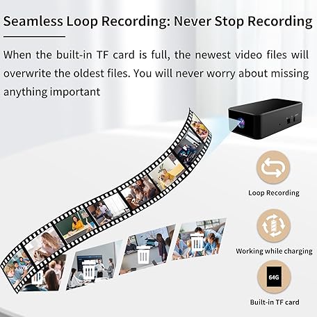 Thông tin sản phẩm Mini Spy Camera - 64GB Hidden 1080P Small Cam, One Button Operate, Loop Record and Motion Detection Video-record, for Babies/Indoors/Outdoors (No WiFi, Include TF Card)
