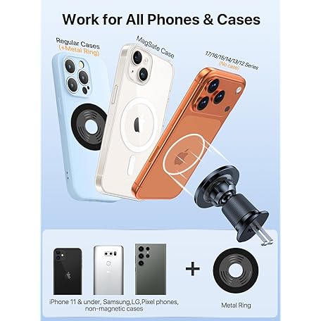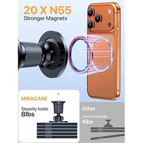 Thông tin sản phẩm Miracase for Magsafe Car Mount, [Upgraded Steel Hook&Strong Magnets] 2 in 1 Magnetic Phone Holder for Cars Air Vent & Dashboard, Mobile Phone Cradle for iPhone 17 Pro MAX 16/15/14/13/12 & Android