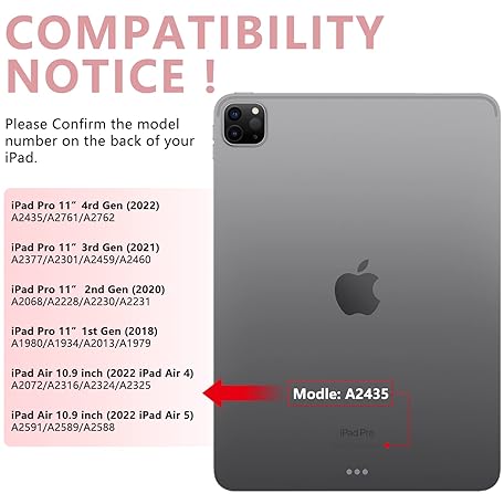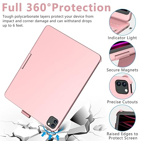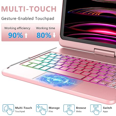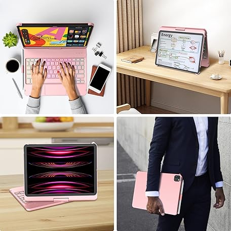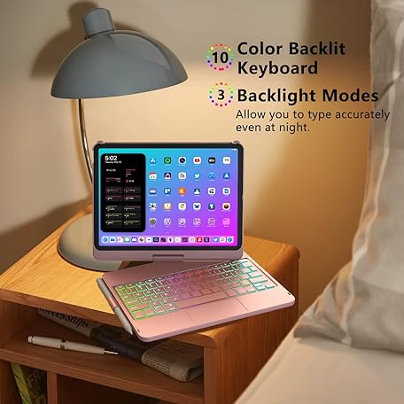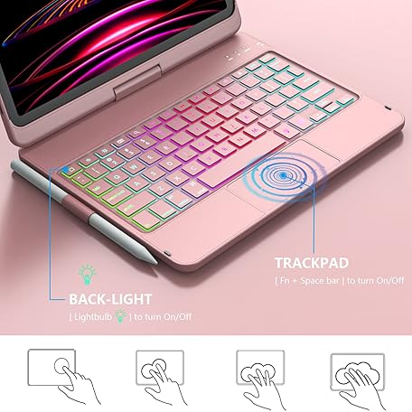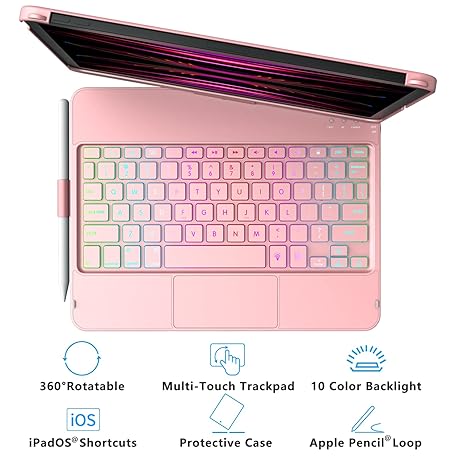 Thông tin sản phẩm MMK iPad 11 Pro Case with Keyboard | Compatible with iPad Air (4th, 5th Gen | M2, M3) & iPad Pro 11 inch (2018-2022, 1st-4th) | 10 Color Backlight & 360 Rotation with Multi-Touch Trackpad-Rose Gold