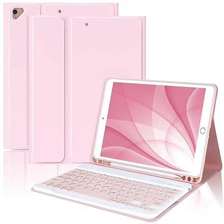 MMK iPad 9th Generation Case with Keyboard, for iPad 8th Generation Case with Keyboard (Wireless Detachable & Pencil Holder), iPad 10.2"/iPad Air 10.5"(3rd Gen)/iPad Pro 10.5" (Pink)
