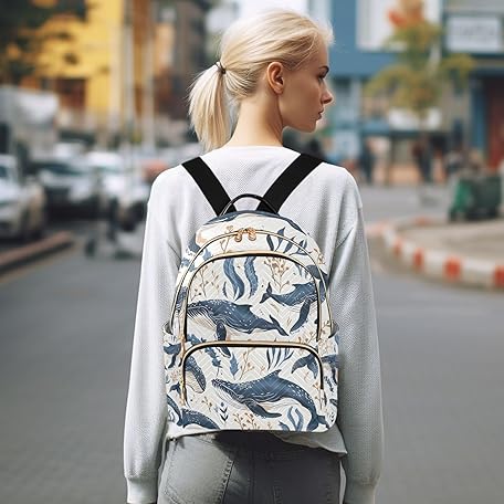 Thông tin sản phẩm Mnsruu Underwater Humpback Whales Swimming Mini Backpack Purse for Women, Travel Bag Casual Daypack Shoulder Bag, S
