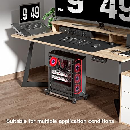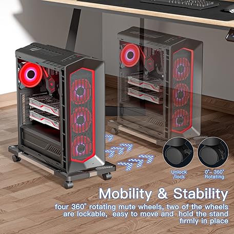 Thông tin sản phẩm Mobile CPU Stand, Desktop Stand, Computer Tower Stand CPU Rolling Stand, Adjustable Computer Mobile Cart Holder with 4 Locking Rolling Caster Wheels Fits Most PC Gaming Case - Black