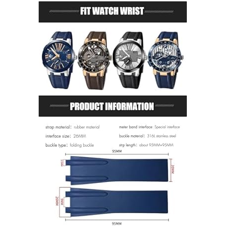 Sản phẩm MODBAND Convex Silicone Rubber Watch Strap 26mm Fit for Athens Ulysse Nardin Watchband Folding Buckle Men Sports Waterproof Bracelets đang được bán với giá ưu đãi là $80.8889 tại nước Anh.