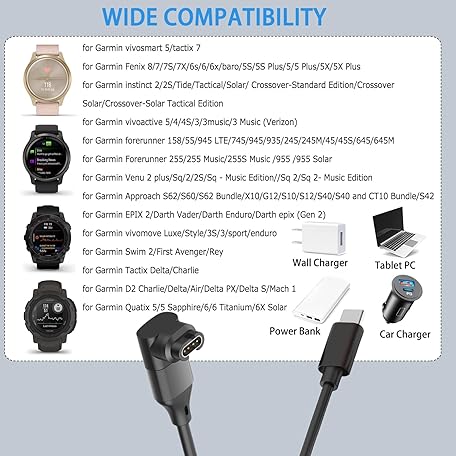 Thông tin sản phẩm MohLythrix Charger Cable for Garmin vivoactive 5 4 3, Forerunner 55/255/265/945/965, Fenix 8 E 7 6 5, Venu 3 3s, epix Gen 2, Instinct 2, Data Sync USB C Charging Cord for Garmin Watch, Black