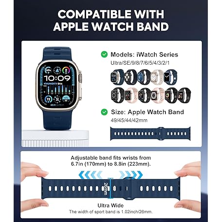 • MoKo 3Pack Ocean Band Compatible with Apple Watch Ultra 2 Strap 49mm 45mm 44mm 42mm for Men Women,Outdoor Silicone Replacement Sport Strap Wrist band for iWatch Series 9 8 7 6 5 4 3 SE Ultra 2 1,A/D/S