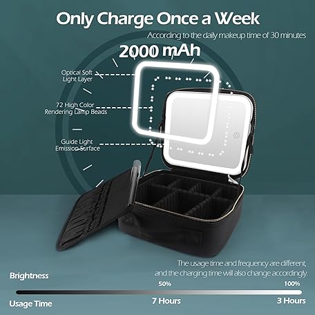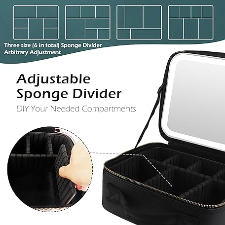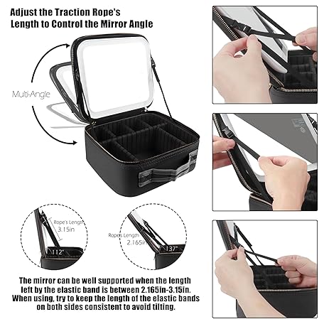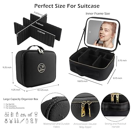 Thông tin sản phẩm MOMIRA Travel Makeup Bag Cosmetic Bag Makeup Organizer Bag with Lighted Mirror, Adjustable Brightness in 3 Color Scenarios, Waterproof Makeup Train Case, Gift for Women - Black