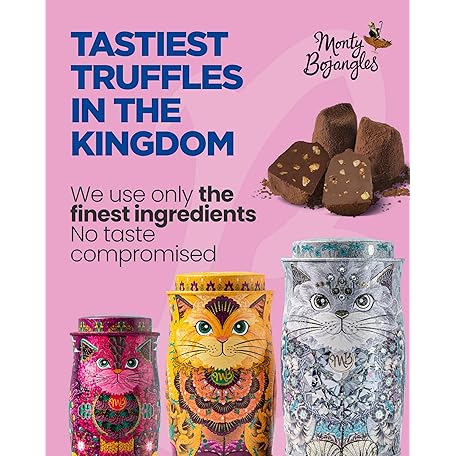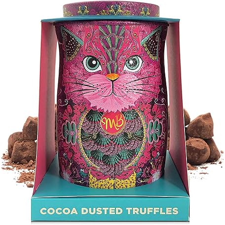 Thông tin sản phẩm Monty Bojangles Cocoa Dusted Chocolate Truffles Cat Tin (Persian Pink - 135g) Choccy Scoffy Flavoured Luxury Chocolatey Truffles - Collectable Cat Tin, Truffles Chocolate Gift Box With Bespoke Design