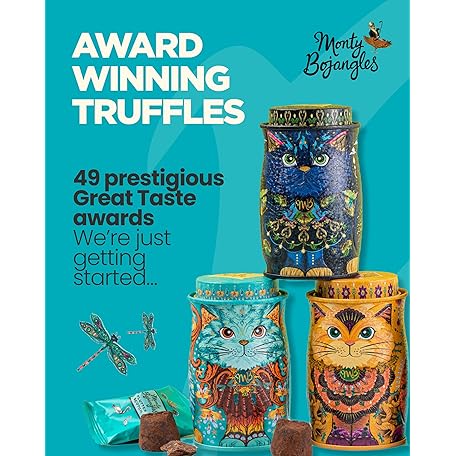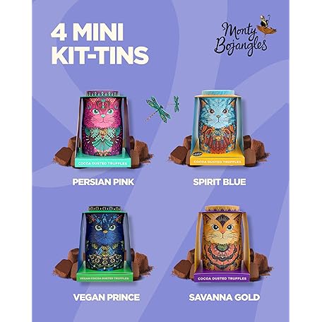Thông tin sản phẩm Monty Bojangles Kit-Tins Cocoa Dusted Chocolate Truffles Gift Set (4 x 36g) Four Flavours In One, Luxury Chocolatey Truffles - Collectable Cat Tins, Truffles Chocolate Gift Box With Bespoke Design