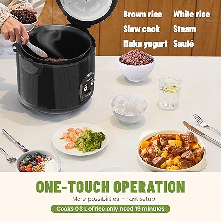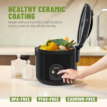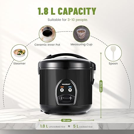 Thông tin sản phẩm MOOSUM Electric Rice Cooker with One Touch for Asian Japanese Sushi Rice, 1.8L for 3-10 People, 10-cup Uncooked, Convenient Cooker with Steamer, Stainless Steel Housing and Auto Warmer, Black