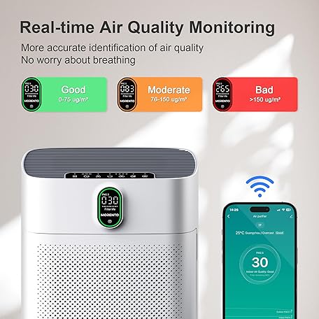 • MORENTO Smart Air Purifier for home Large Rooms up to 1076 ft², Wi-Fi and Alexa compatible, Auto Mode, Quiet Mode 24dB, HEPA Filter Removes Dust, Pollen, Smoke 1 Pack