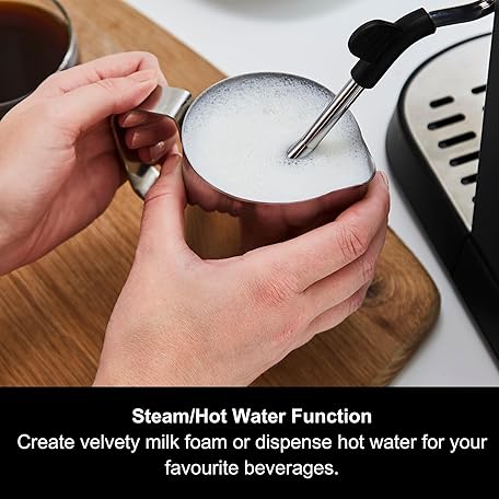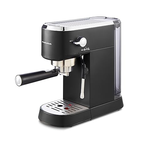 Thông tin sản phẩm Morphy Richards Signature Compact Espresso Maker, Ground Coffee, Dual Cup, Illuminated Buttons, 1L Water tank, Steam Control, Stainless Steel, Black, 172024