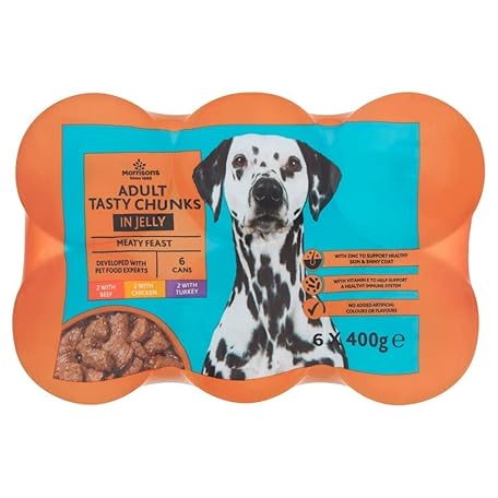 Sản phẩm Morrisons Dog Food Meat Chunks In Jelly, 6 x 400 g đang được bán với giá ưu đãi là $12.1971 tại nước Anh.