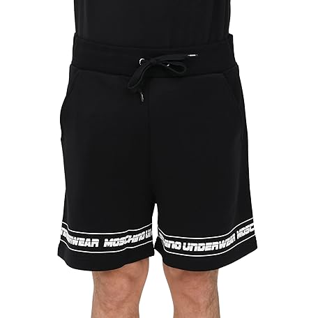 Moschino Men's Shorts Black Sport Casual Shorts Black Men's with Logo Band on the Bottom Spring Summer 2022 54% Polyamide 46% Cotton V43228129 0555