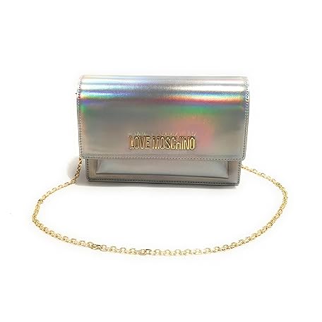 Moschino Women's bag Love shoulder strap in faux leather silver iridescent B24MO46 JC4095, silver, S