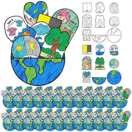 Motipuns 24 Sets 7 Days of Creation Painting Cards Religious Color Your Own Bible Crafts Mobile Bible Art Gift for Religious Christian Theme Party School Sunday Church Gifts