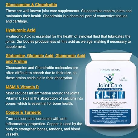 Thông tin sản phẩm Moveit Joint Care Supplement – 60 Capsules | Glucosamine, Chondroitin, MSM, Turmeric, Hyaluronic Acid, Vitamin D & Copper | Bone & Muscle Support for Mobility, Flexibility & Comfort - 2 Month Supply