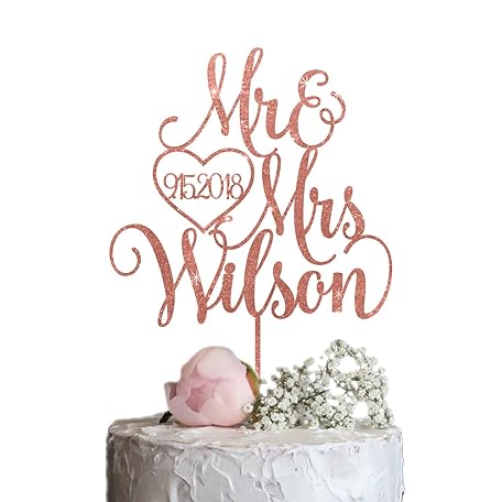 Mr & Mrs Wedding Cake Topper with Last name and Date, Elegant Custom Mr and Mrs Cake Topper, Personalised cake topper also available in Rose Gold, Gold, Silver or Champagne Glitter
