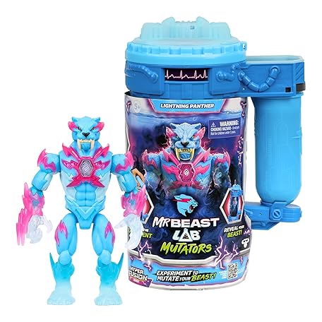 MrBeast Lab Hyper Fusion Mutators, Experiment & Create The Lightning Panther, Add Mutation Fluid, Press The Fingerprint Scanner & Reveal The Panther, Over 20 Points Of Articulation, Collect All 3