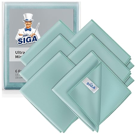 Sản phẩm MR.SIGA Ultra Fine Microfiber Cloths for Glass, Pack of 6, 35 x 40 cm 13.7" x 15.7" đang được bán với giá ưu đãi là $20.0778 tại nước Anh.