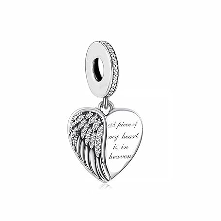 Thông tin sản phẩm M&S A Piece Of My Heart Is In Heaven Angel Wing Love Heart Charm Bead Pendant, 925 Sterling Silver Dangle Charm, Compatible With Pandora & European Bracelet …