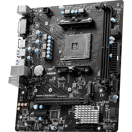 Sản phẩm MSI B450M-A Pro Max II Motherboard, Micro-ATX - for AMD Ryzen processors 5000, 4000, 3000, 2000, 1000, AM4 - DDR4 Memory Boost 4133+MHz/OC, PCIe 3.0 x16 Slot, M.2 Gen3 Slot, 2.5G LAN đang được bán với giá ưu đãi là $90.8951 tại nước Anh.