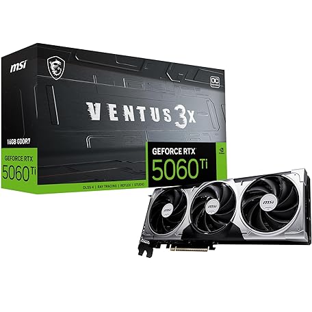 MSI Gaming RTX 5060 Ti 16G Ventus 3X OC Graphics Card (16GB GDDR7, 128-bit, Extreme Performance: 2617 MHz, DisplayPort x 3 2.1a, HDMI 2.1b, NVIDIA Blackwell Architecture)
