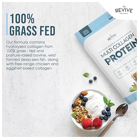 Thông tin sản phẩm Multi Collagen Protein Powder (1kg) - Types I, II, III, V & X - Hydrolyzed Grass Fed Bovine, Wild Caught Fish, & Free-Range Chicken & Eggshell Collagen by Revive Naturals