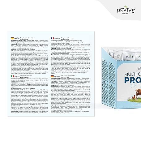 Thông tin sản phẩm Multi Collagen Protein Powder Packets - Types I, II, III, V & X - Hydrolyzed Grass Fed Bovine, Wild Caught Fish, & Free-Range Chicken & Eggshell Collagen (10g Each, 40 Packets) by Revive Naturals